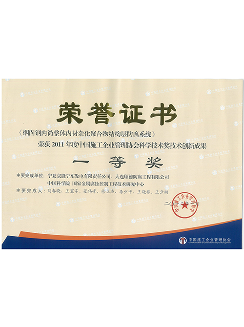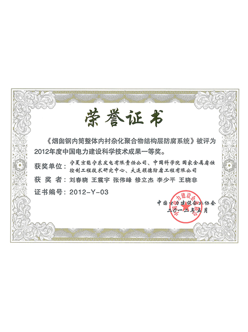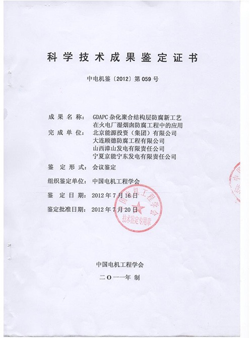 2012年度煙囪防腐科技成果證書(shū)