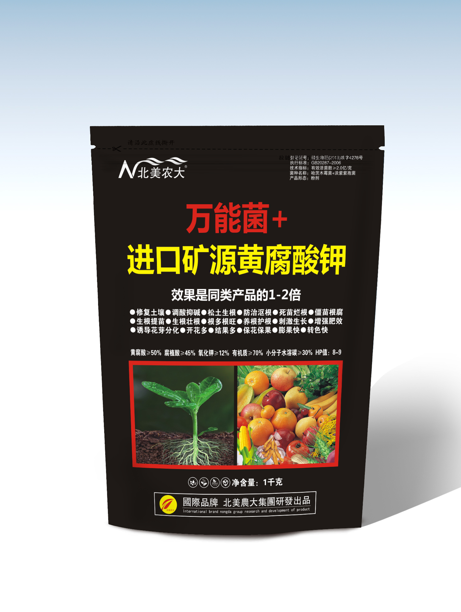 本品是北美農(nóng)大集團(tuán)與中國(guó)農(nóng)科院微生物研究所和美國(guó)杜克高產(chǎn)研究所強(qiáng)強(qiáng)聯(lián)合,研發(fā)一種以萬(wàn)能菌和進(jìn)口礦源黃腐酸鉀為母基,加入休眠狀態(tài)的哈茨木霉菌,淡紫紫孢菌使土壤快速修復(fù),快速改良土壤,減少土傳病害,生根多、開(kāi)花多、結(jié)果多的神奇產(chǎn)品。本品有以下特點(diǎn):