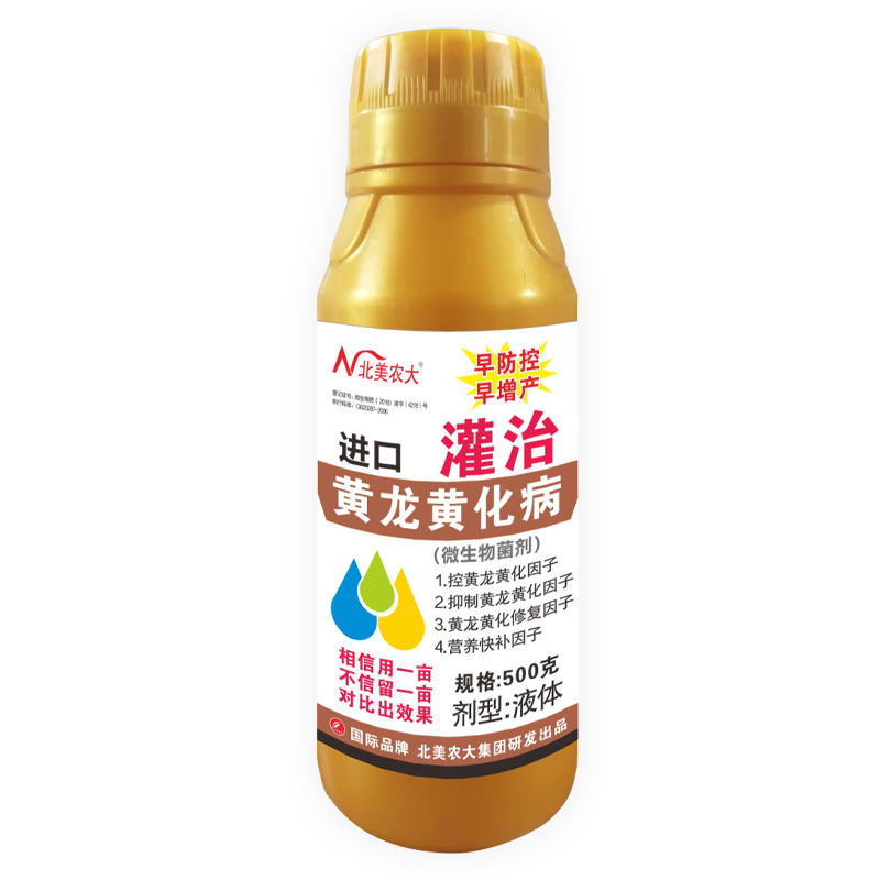 本品由北美農(nóng)大集團研究院與中國農(nóng)科院微生物研究所共同研發(fā)出的絡合菌修復傳導因子,本制劑的研發(fā)方便了微生物菌與抑制病菌因子、控黃龍黃化傳導因子、營養(yǎng)因子、修復因子、快補因子的混合,提高了絡合菌修復傳導因子的效果。淋根、灌根或穴施,在作物表面形成一種滲透修復傳導保護膜和滲透傳導營養(yǎng)膜,防控傳導因子膜,控菌因子膜,使作物重復的修復、傳導,補充營養(yǎng),達到以菌殺菌、以菌治菌、一菌感染、菌菌消除的效果,使作物健康生長。