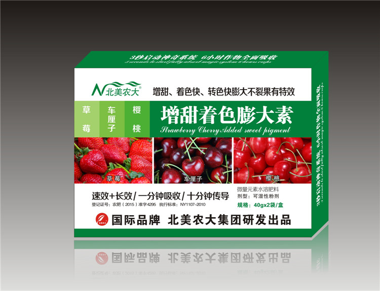 【產(chǎn)品特點】: 本品是北美農(nóng)大集團(tuán)與中國農(nóng)科院針對草莓、車?yán)遄印烟姨欠稚?、轉(zhuǎn)色慢、顏色不正、果實小、畸形,而研發(fā)一種特效產(chǎn)品。本產(chǎn)品使草莓、車?yán)遄?、櫻桃增加糖分快、著色快、轉(zhuǎn)色快、膨大不裂果,從根部傳導(dǎo)到果實上。對作物形成了一秒鐘吸收、十分鐘傳導(dǎo)的神奇產(chǎn)品。本品富含有鈣、鉀、硼、鐵、硅、錳、鋅等多種元素、海藻素和氨基酸、稀土和抗病因子等有效成分,本效果是同類產(chǎn)品的數(shù)倍,本品具有加快細(xì)胞分裂,加快器官內(nèi)質(zhì)的充實及蛋白質(zhì)的合成,促進(jìn)果實快速膨大,提高果實的糖分、蛋白質(zhì)、維生素等含量,增加果實的硬度、增糖增色、耐運輸貯存、提高果實品質(zhì)。使用本品無毒無害,提高產(chǎn)量30%以上。 【使用方法】: 1.每包兌水15-20公斤,間隔期7天。稀釋倍數(shù)800-1000倍液。 2.在幼果期、膨果期、膨果后期各噴一次,能收到意想不到的效果。(留出一塊空白地,作對比效果) 規(guī)格:40克*2袋*100盒/箱 ![]() (責(zé)任編輯:admin) |
