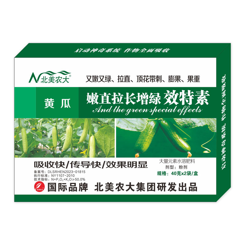 ?本品是北美農(nóng)大集團(tuán)與中國(guó)農(nóng)科院針對(duì)黃瓜生長(zhǎng)特點(diǎn)和對(duì)各種微量元素的需求而研制的又嫩又綠、拉直、頂花帶刺、膨果、果重的特效產(chǎn)品。本品富含有鈣、硅、鉀、硼、鐵、錳、鋅等多種元素、海藻素和氨基酸、稀土和抗病因子等有效成分,使作物形成了吸收快、傳導(dǎo)快的神奇產(chǎn)品。能有效的把作物營(yíng)養(yǎng)生長(zhǎng)轉(zhuǎn)化為生殖生長(zhǎng),合理調(diào)節(jié)作物的營(yíng)養(yǎng)生長(zhǎng),使作物根系發(fā)達(dá)、增強(qiáng)光合作用、葉綠素含量增加、葉片肥厚、分支增多、?;ū9?、莖枝粗壯、快速的伸長(zhǎng)拉直增綠。有效的除銹、光潔果面,使用本品無(wú)毒無(wú)害,增產(chǎn)明顯。
