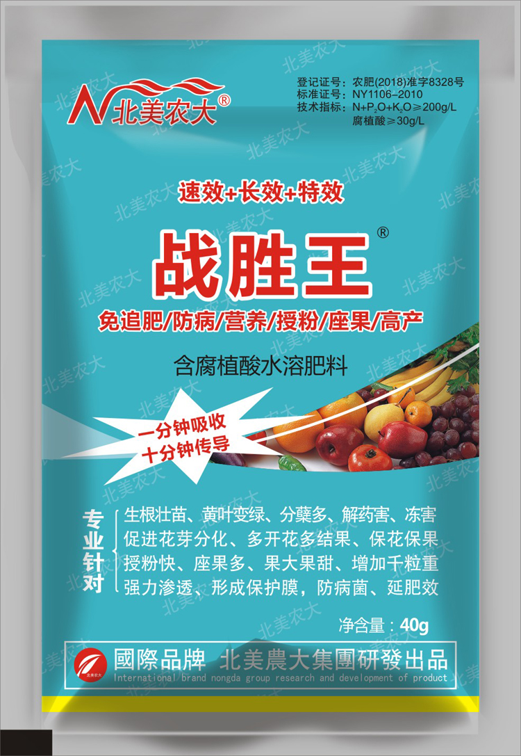 使用方法或用法用量: 1、大田作物及蔬菜類:苗期、生長期、膨果中后期30g-50g兌水15kg-20kg。地力不足、底肥不足酌情增加用量,間隔不小于7天。 2、果樹類:稀釋倍數(shù)800-1000倍,地力不足、底肥不足酌情增加用量或增加噴施次數(shù),間隔不小于7天。 適用作物: 小麥、水稻、花生、玉米、棉花、大豆、芝麻、油菜、辣椒、瓜果、蔬菜、土豆、紅薯、煙草、中草藥、茶葉、各種果樹、草莓、葡萄、榛子。 規(guī)格:40g*100袋/桶 (責(zé)任編輯:admin) |