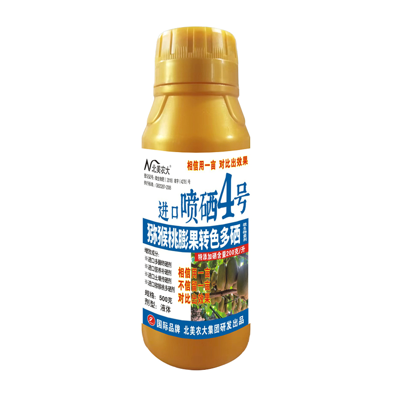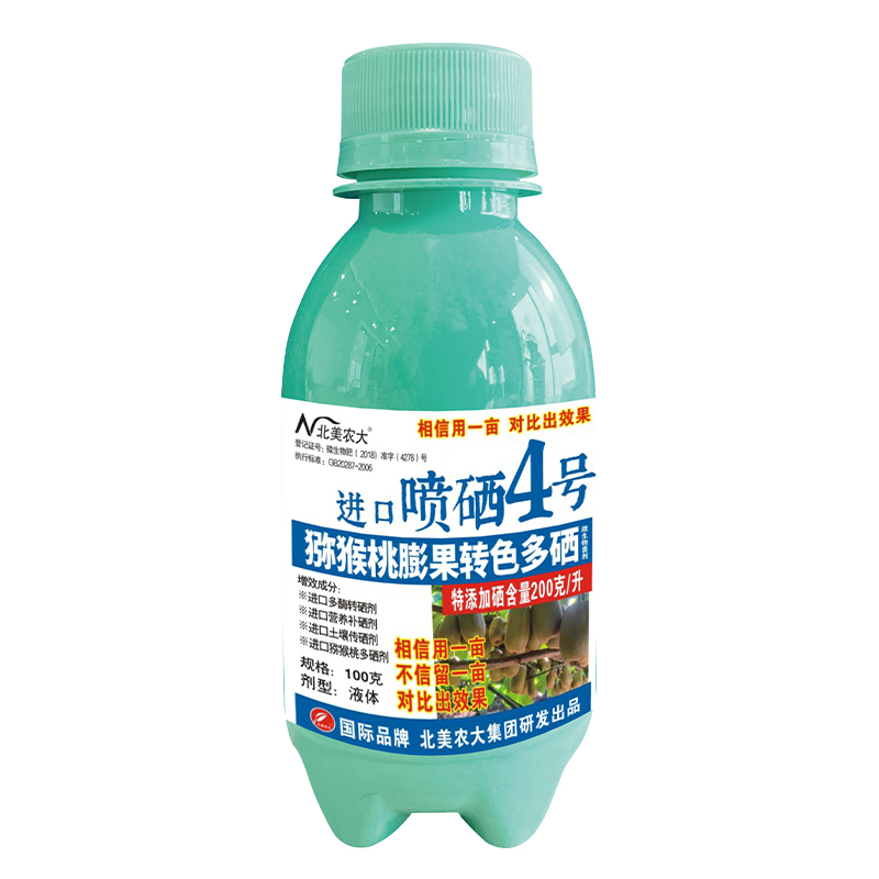 ![]() ![]() 本品由北美農(nóng)大研發(fā)部與中國農(nóng)科院針對作物無硒、獼猴桃無硒或硒少、土壤有硒作物不吸收而研發(fā)一種產(chǎn)品-多硒轉硒酶,本制劑的研發(fā)方便了生物菌與多硒酶+進口轉色增硒劑+土壤傳導轉硒酶+獼猴桃轉硒酶的混合,并增強了含硒量,土壤中的硒向上傳導到果實里,從而提高果實含硒量、靚度、保鮮度,耐儲存的效果。使作物快速吸收,快速補充營養(yǎng)并傳導到作物各個部位,其效果顯著,以菌多硒、以菌轉硒,以菌增硒的顯著效果。